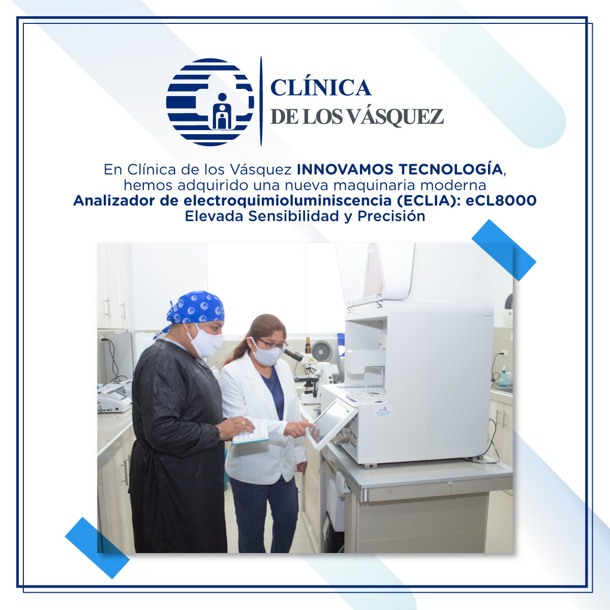 Seguimos innovando en la mejor tecnología, adquirimos una nueva máquina Analizador de electroquimioluminiscencia (ECLIA): eCL8000 (elevada sensibilidad y precisión) con la más alta tecnología, y así garantizar la asistencia, diagnóstico y control seguro a los pacientes.